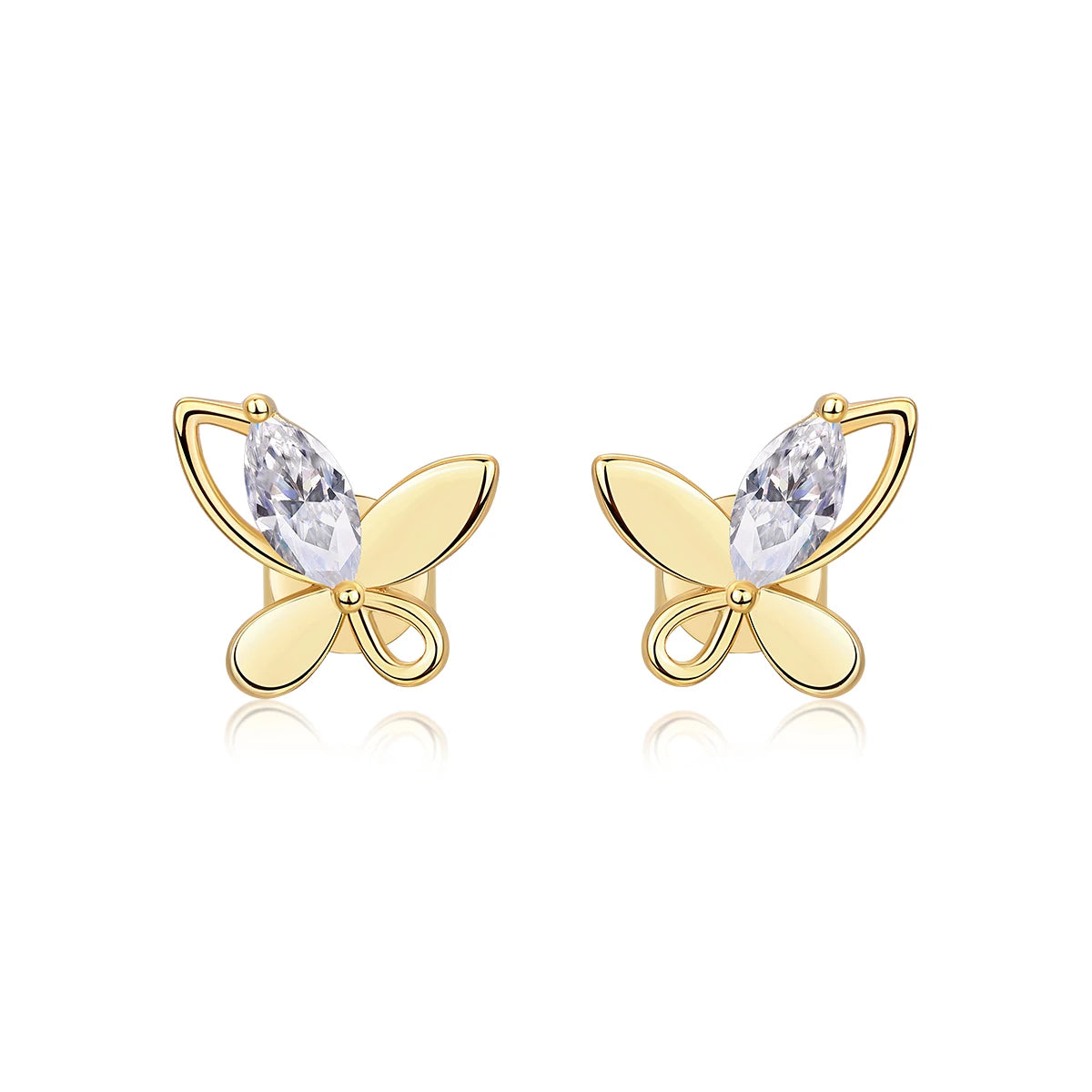 העגילים בעיצוב פרפרים עדינים חושפים אבן מואסנייט בצורת מרקיזה אשר שוברת את האור בברק רך ומרשים. הם יושבים בנוחות מושלמת על האוזן ומוסיפים טאץ׳ נשי מלא חיים, מתאים ליום יום או לערב מיוחד. עשויים מכסף סטרלינג 925 בציפוי זהב 18k, הם מבטיחים שילוב מושלם בין עידון לנוכחות.