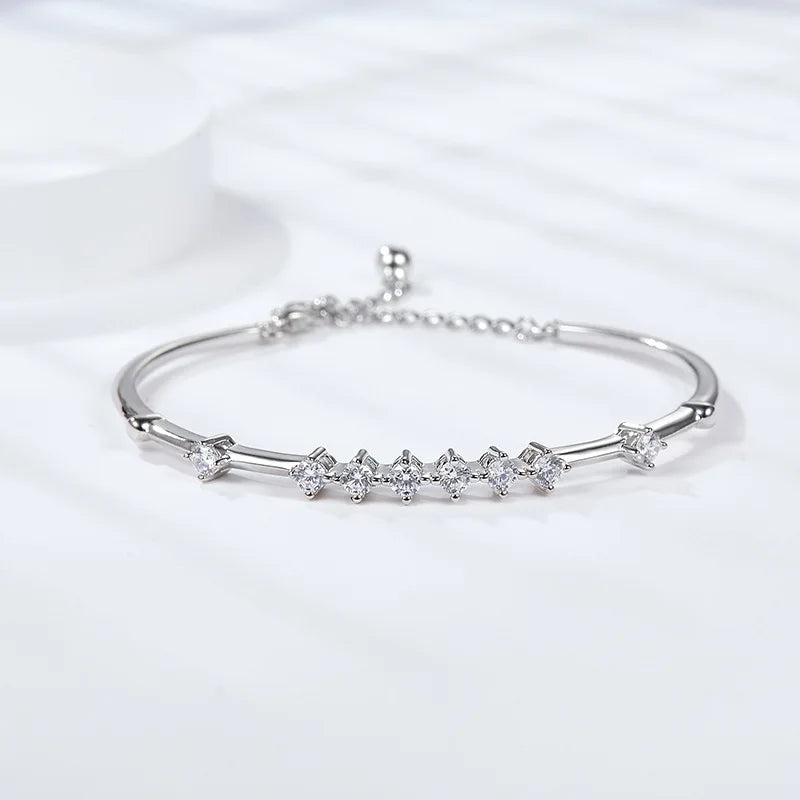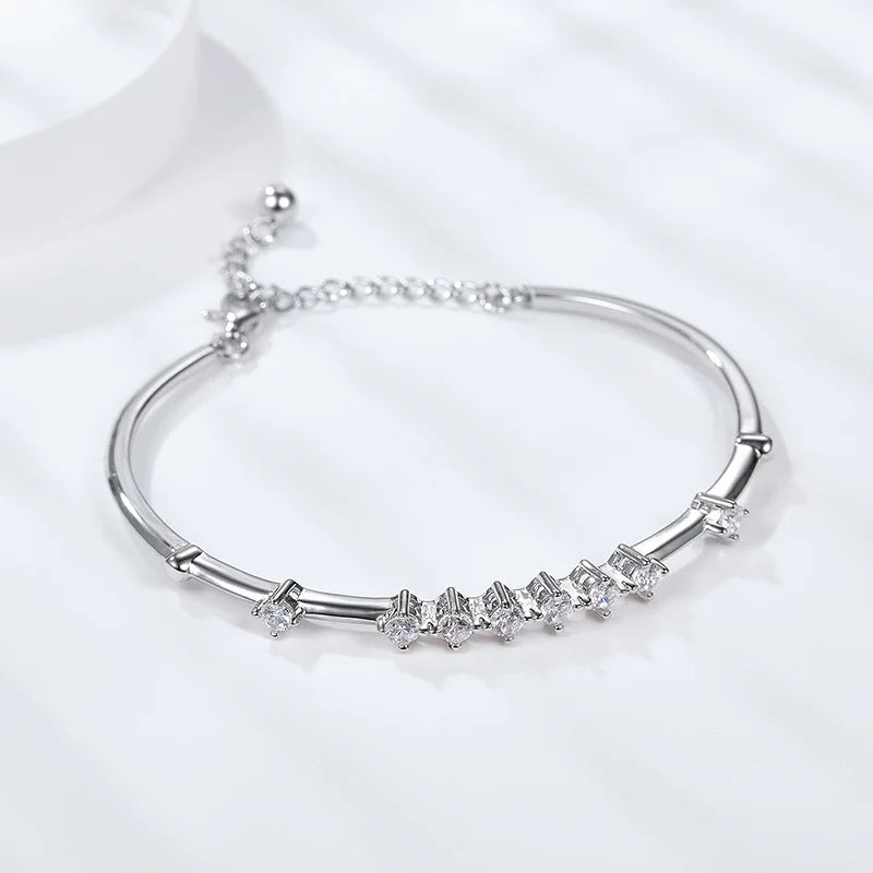 הצמיד נראה עדין ומודרני, עם אבנים נוצצות שמוסיפות ברק ויוקרה. האור נשבר על האבנים בצורה שמדגישה את הבהירות שלהן, ויוצר תחושת יוקרה מאופקת. הוא שוכן בנוחות על פרק כף ידך, ומעניק מראה מושלם לכל הופעה, יומיומית או חגיגית.