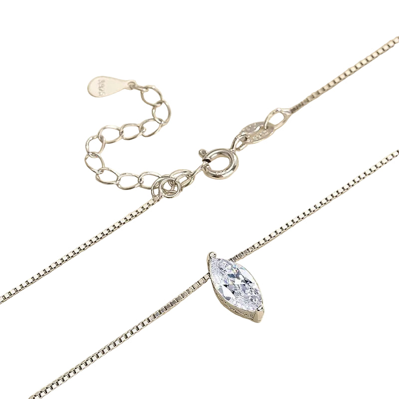 השרשרת משדרת אלגנטיות עכשווית עם תליון מעודן בצורת מרקיזה, המפזר את האור בזוהר מרהיב. כשאת עונדת אותה, האבן המרכזית מושכת את העין בניצוץ נקי ומלא חיים. העיצוב המודרני והגימור המבריק יוצרים שילוב מושלם בין עדינות ותחכום, המתאים לכל רגע – מאירוע חגיגי ועד יום רגוע שבו בא לך להאיר את עצמך.