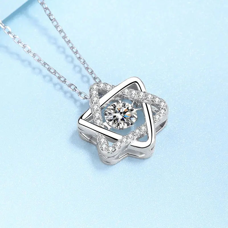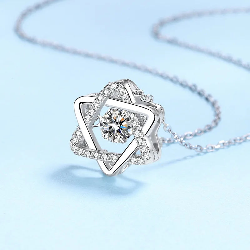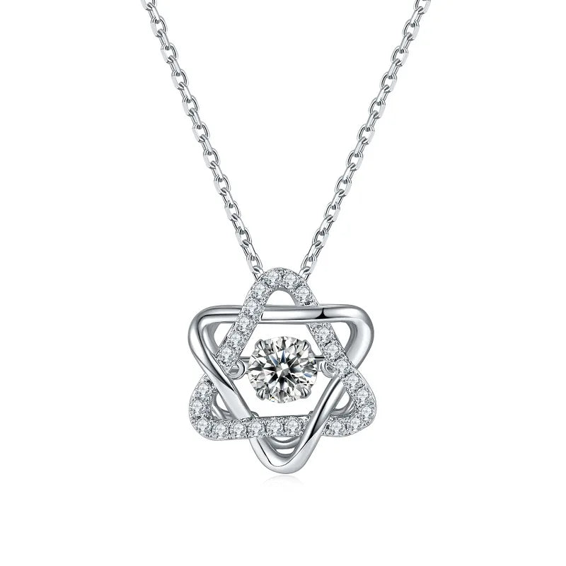 השרשרת מעוצבת סביב תליון מגן דוד עדין המשובץ באבני מואסנייט קטנטנות המפיקות ברק מעודן. האבן המרכזית, בחיתוך עגול מושלם, לוכדת את האור מכל זווית ומעניקה לך נוכחות בוהקת ומלאת ביטחון. העיצוב המודרני בשילוב מבנה הכסף הלבן משלים הופעה נשית ורכה, כזו שאי אפשר להתעלם ממנה.