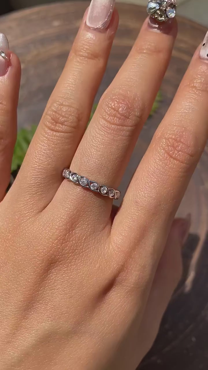 הטבעת נראית אלגנטית ומודרנית עם עיצוב קלוע שמעניק לה מראה ייחודי. האור נשבר על האבנים הקטנות ומוסיף ברק עדין ומעודן. עלייך היא משדרת תחכום ופשטות בו־זמנית ומתאימה לכל רגע, בין אם את צועדת ביום שקט ובין אם באירוע מיוחד.