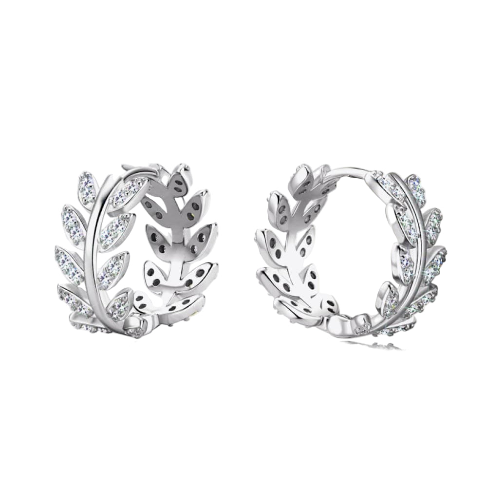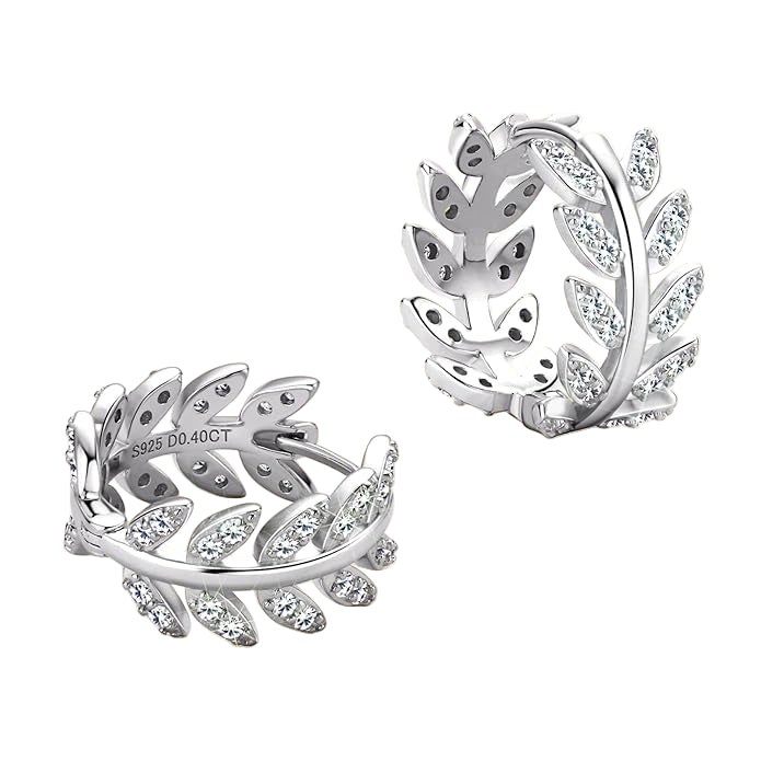 העגילים המעוצבים בצורת עלים נוגעים ברכות בקו הפנים שלך, כשהאור נשבר על פני אבני המואסנייט ומעניק ברק עדין ומרשים. הם מחברים בין תחושת טבעיות לרעננות מודרנית, מושלמים ליום יומי ובעלי נוכחות מעודנת גם באירועים מיוחדים. שילוב של כסף סטרלינג 925 בציפוי רודיום לבן מבטיח עמידות ויוקרה המלווה אותך לאורך זמן.