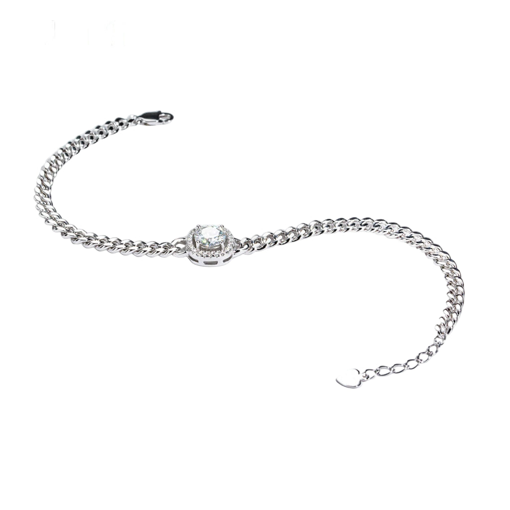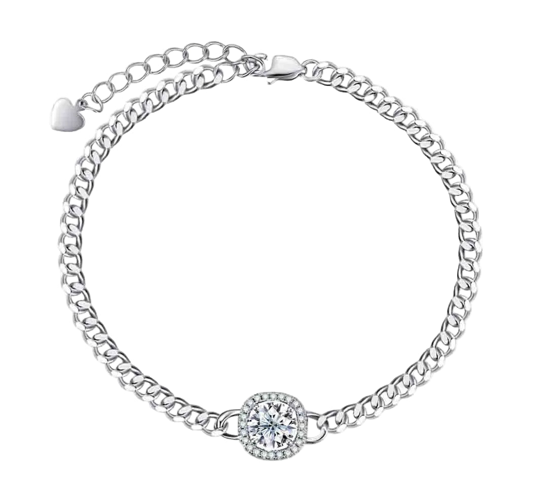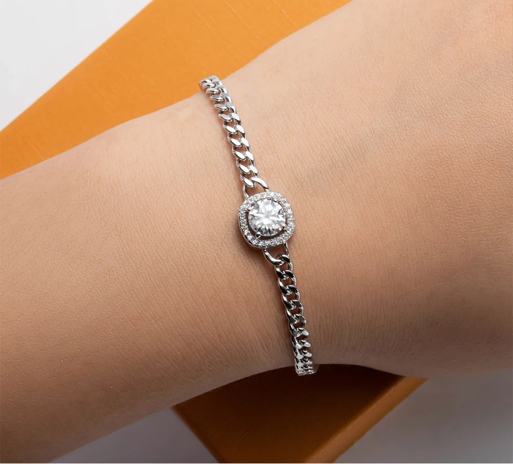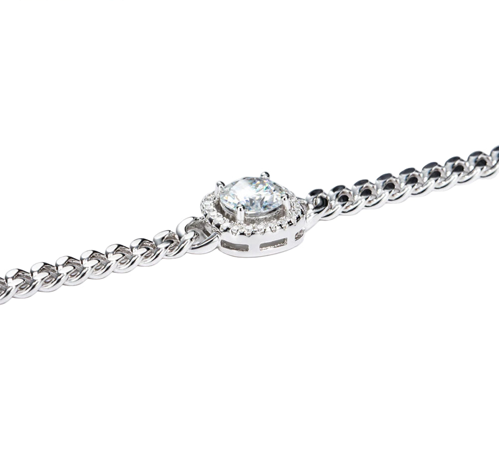 הצמיד נראה אלגנטי ומודרני, עם אבן מרכזית שמוסיפה ברק ונוכחות. האור נשבר על האבן המרכזית ומעניק לה זוהר מיוחד. הצמיד משדר תחושת יוקרה ועדינות, ומתאים לך לאירועים מיוחדים כמו גם ליום יום. עשוי מכסף סטרלינג 925 בציפוי רודיום לבן, הוא מעניק מגע של רעננות ואלגנטיות לכל תנועה שלך.
