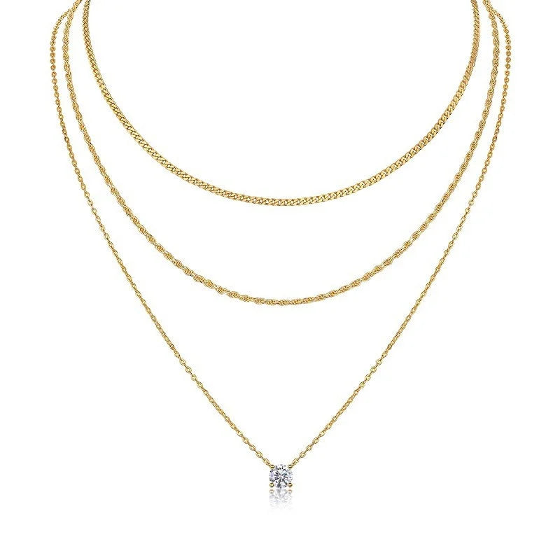 שרשרת תלת־שכבתית מרהיבה, השוזרת עדינות עם נוכחות יוקרתית.